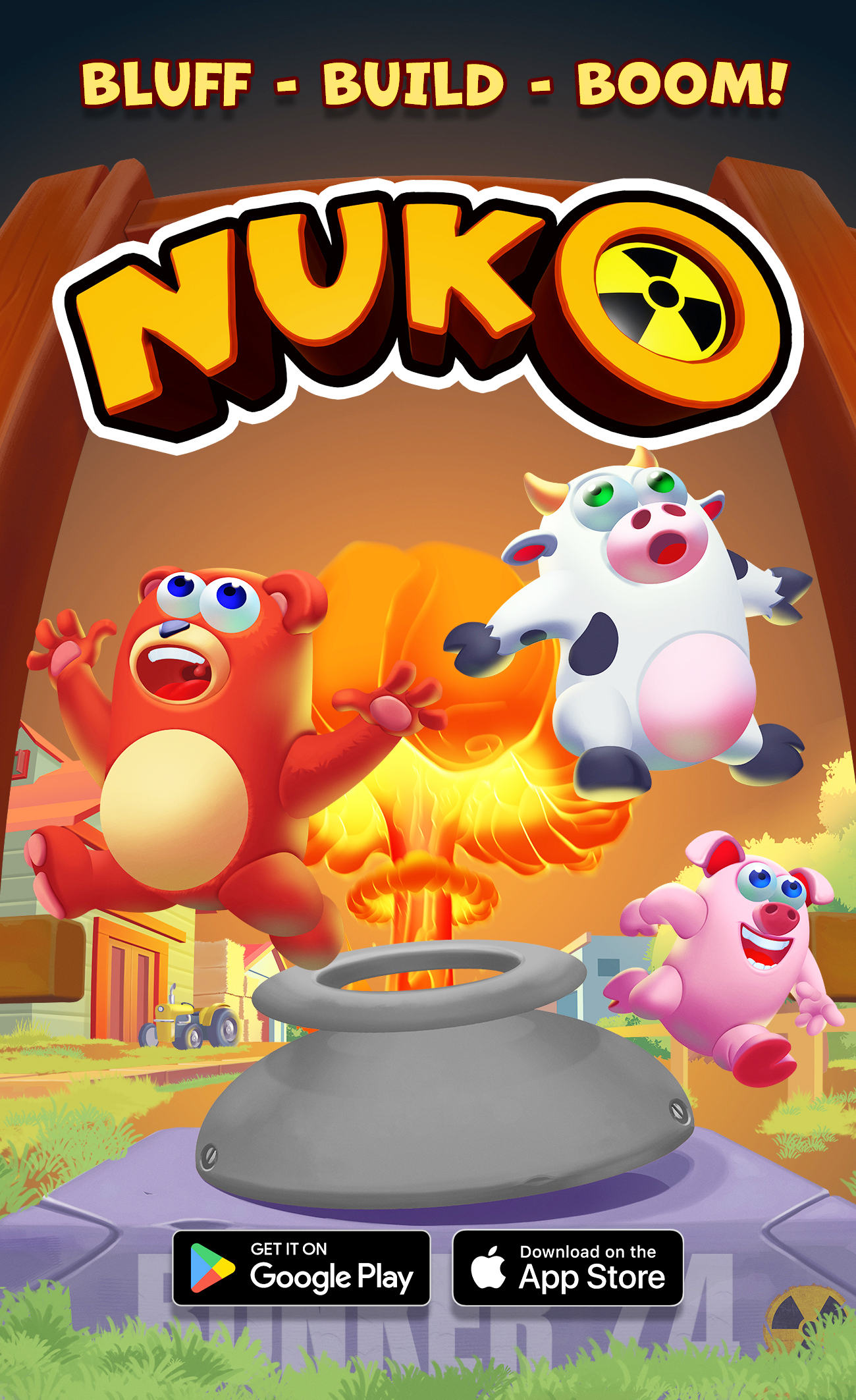 NUKO is a fast paced bluffing game set during the apocolypse! The world is ending! Are you prepared? Use your bluffing skills to earn credits, rescue rare wildlife and save priceless collectables. An abundance of Credits helps you build out, customize and manage your bunkers. Survive the end in style, and have fun doing it!